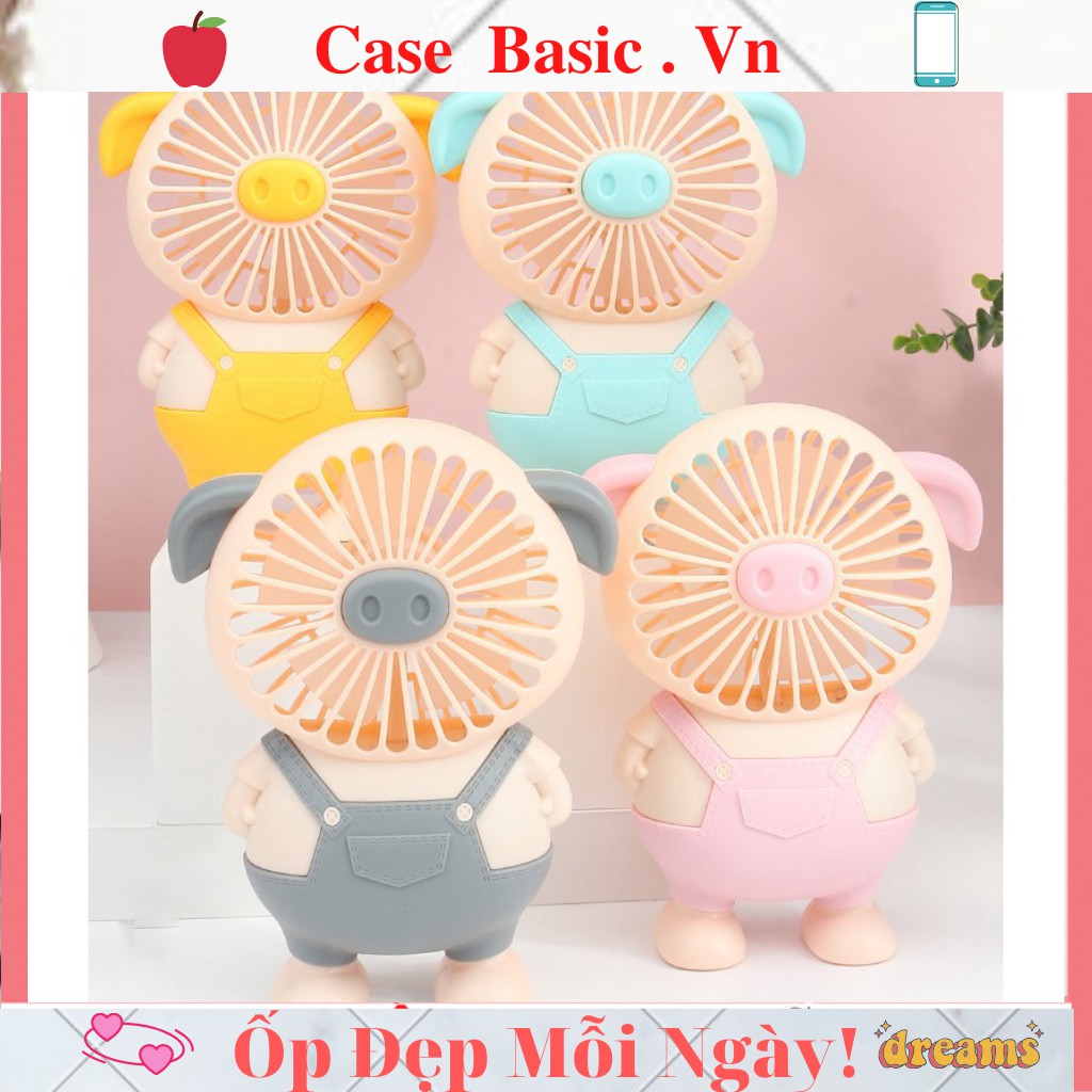 Quạt mini cầm tay 5 Cánh Hình heo - Quạt Heo - Quạt lợn tíchđiện để bàn dễ thương Full bộ cáp sạc + pin