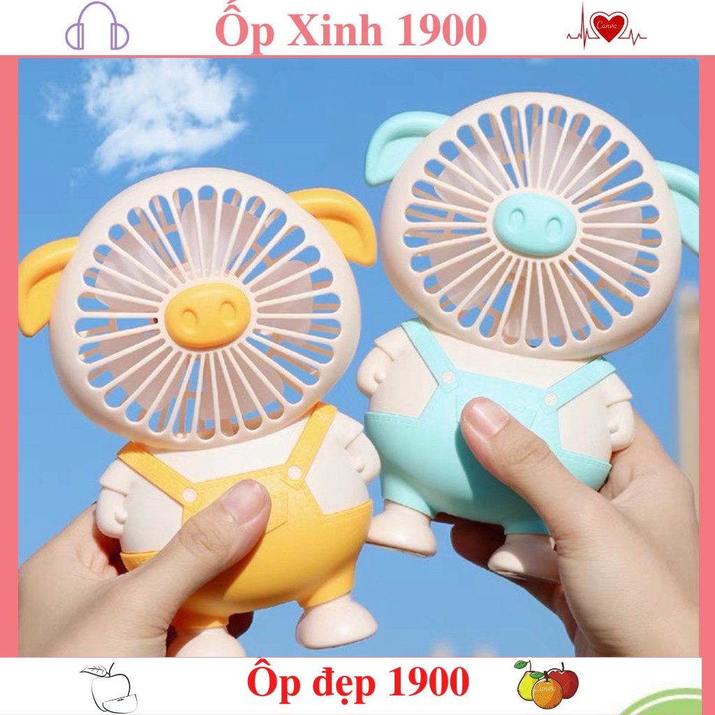 Quạt mini cầm tay 5 Cánh Hình heo - Quạt Heo - Quạt lợn tíchđiện để bàn dễ thương Full bộ cáp sạc + pin