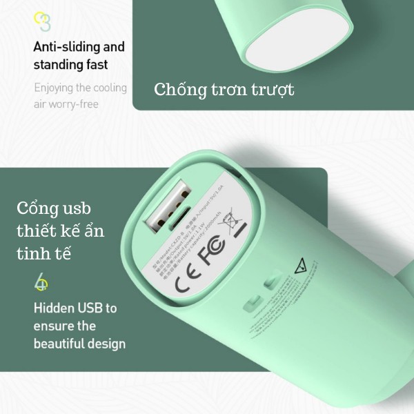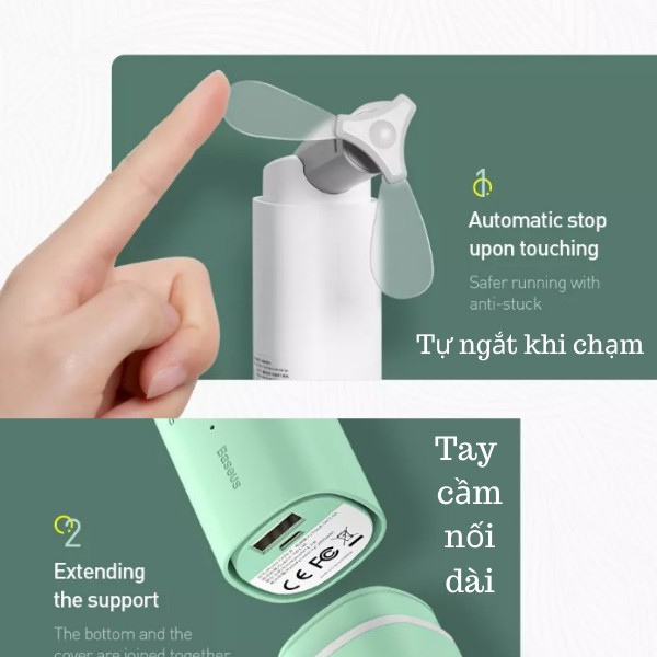 Quạt Mini Cầm Tay Baseus Kiêm Sạc Dự Phòng 2000 mAh Nhỏ Gọn Thời Trang Tiện Dụng
