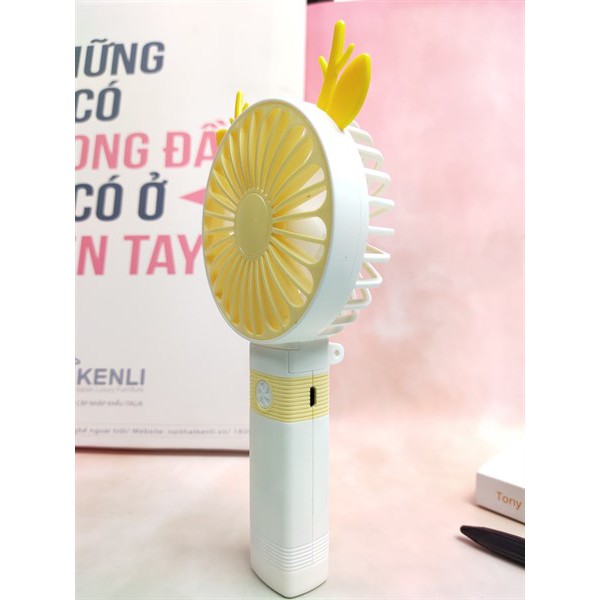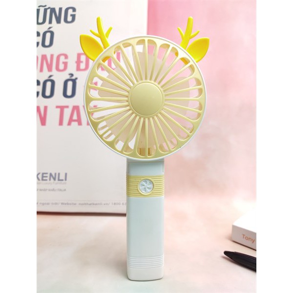 Giới thiệu Quạt Mini Cầm Tay Cao Cấp Có Thể Gấp Tiện Dụng, Fan 2 Tốc Độ Gió Kèm Usb Cắm Sạc Hình Sừng Tuần Lộc - Màu Vàng