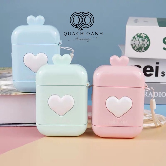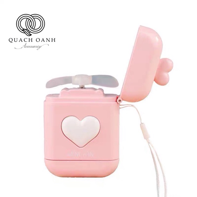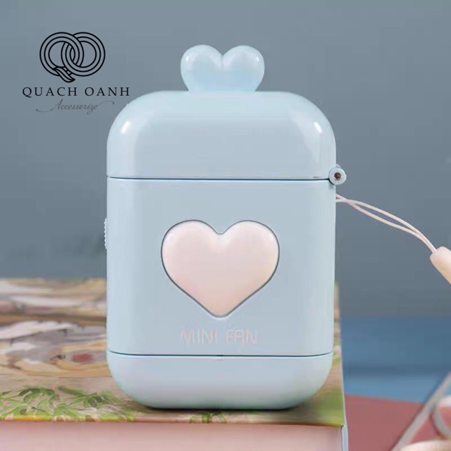 - Quạt mini được thiết kế giống 1 chiếc hộp tai nghe airpod nhưng lớn hơn, hình tai mèo ngộ nghĩnh dễ thương nhiều màu sắc, phù hợp với mọi lứa tuổi