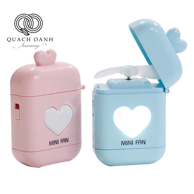 Giới thiệu Quạt mini cầm tay có đèn led nhỏ gọn và tiện dụng, họa tiết dễ thương - V27 - QUAT14