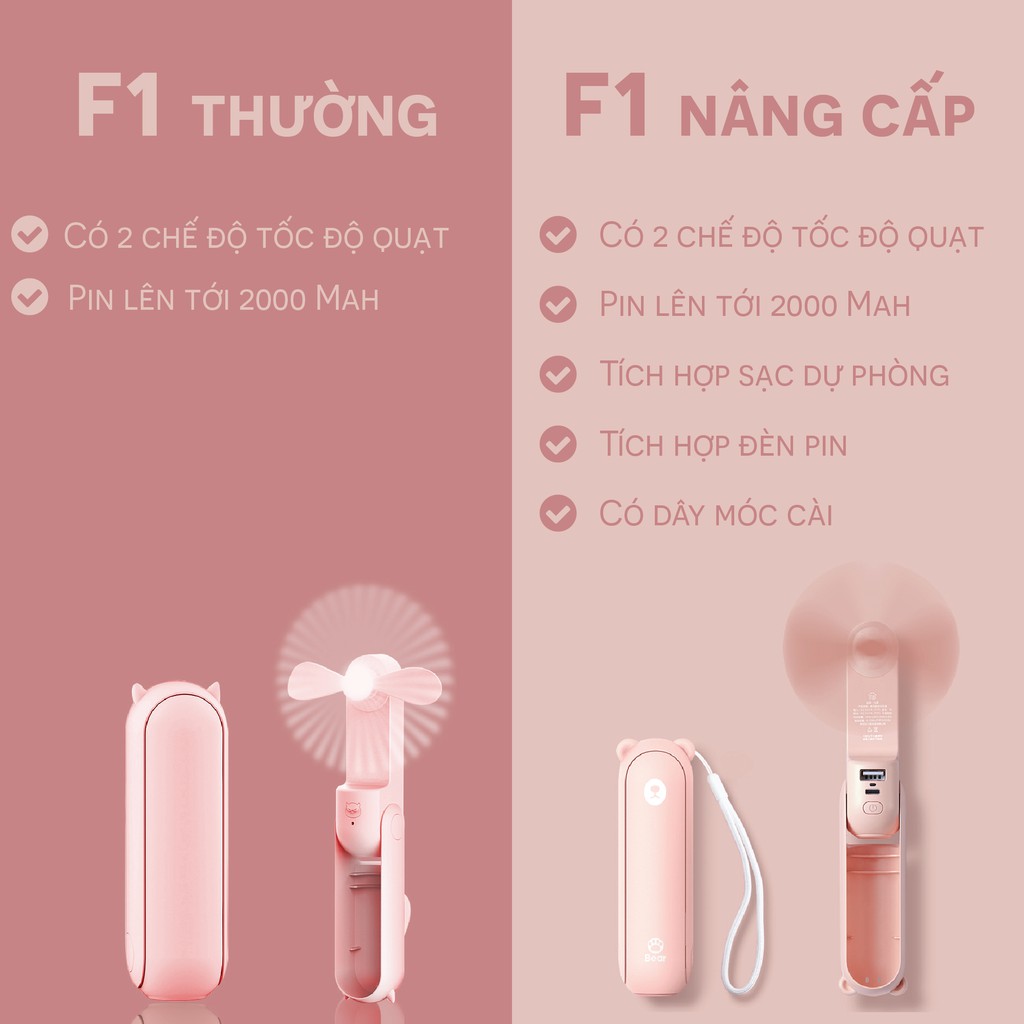 Quạt mini cầm tay đa năng 3in1 gấu bear phiên bản nâng cấp F1 - Hoạt động tới 24 giờ liên tục - Dung lượng 2000mAh