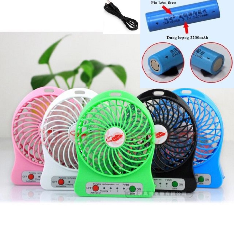 - Bao gồm: 1 quạt, 1 dây cáp sạc USB, 1 viên pin sạc Li-ion 3.7V