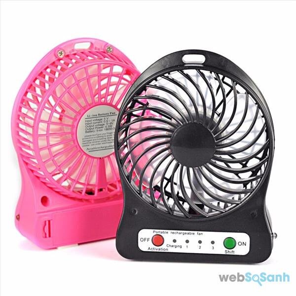 - Quạt sử dụng pin sạc có thể hoạt động liên tục trong nhiều giờ.
