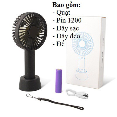 - Bao gồm: 1 quạt N9, 1 viên pin kèm theo (dung lượng pin 1200mAh), dây sạc micro USB, dây đeo quạt, chân đế để quạt đứng thăng bằng được.