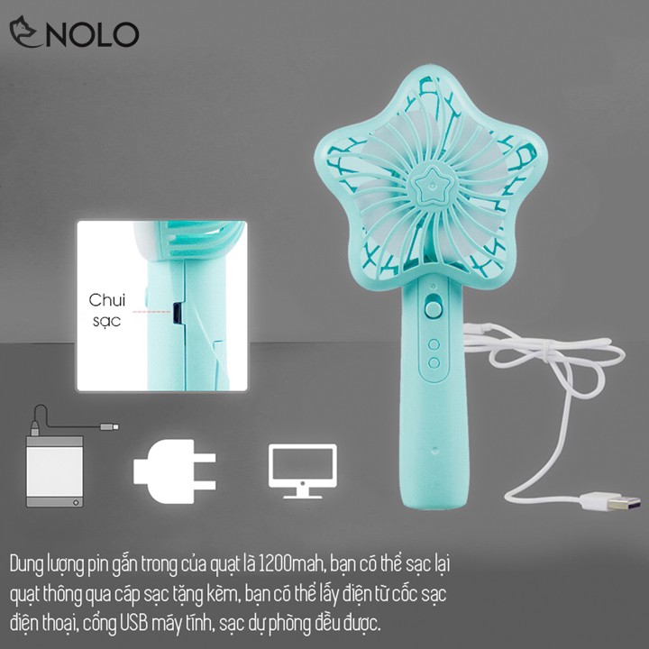 Giới thiệu Quạt Mini Cầm Tay Để Bàn Pin Sạc Có Đèn Led Model T663 Kiểu Dáng Ngôi Sao Dung Lượng Pin 1200mah