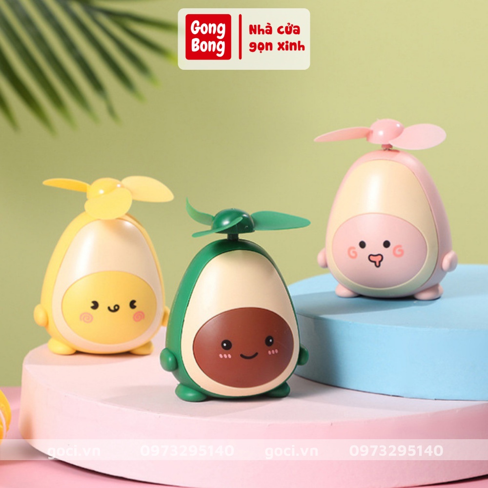 Quạt mini cầm tay để bàn sạc điện USB hình quả bơ cute dễ thương tiện lợi