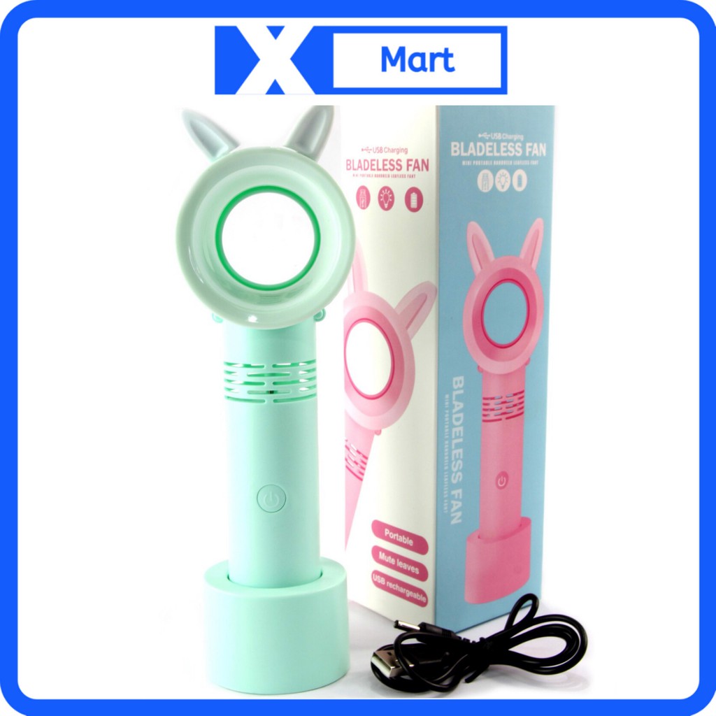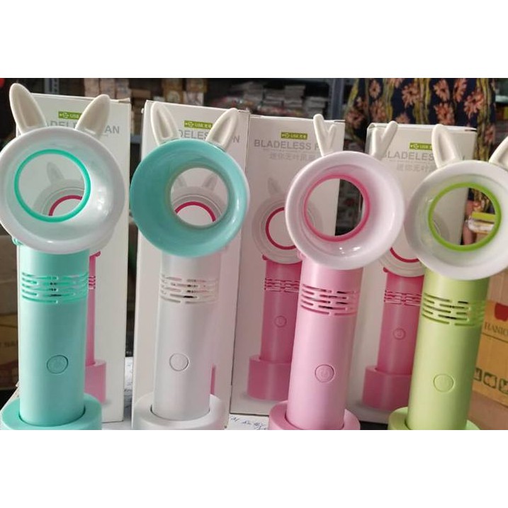 Quạt mini cầm tay để bàn tai thỏ không cánh, quạt du lịch đa năng pin trâu