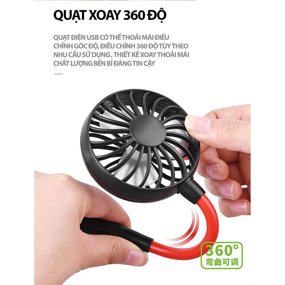 Quạt mini cầm tay đeo cổ 2 cánh 3 chế độ gió siêu mát có tích điện sạc usb dự phòng uốn dẻo tiện dụngQuạt đeo cổ chữ U sạc USB được thiết kế thông minh có thể đeo lên cổ gọn gàng, bạn không còn cảm thấy bất tiện như khi phải cầm trên tay những chiếc quạt mini cầm tay thông thường.
