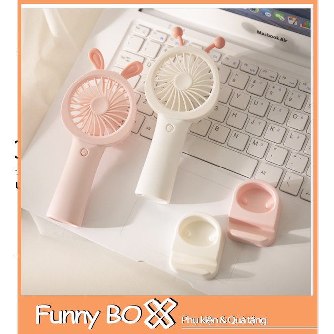 Quạt Mini Tích Điện Cầm Tay Có Giá Đỡ Để Bàn 2 Chế Độ Gió