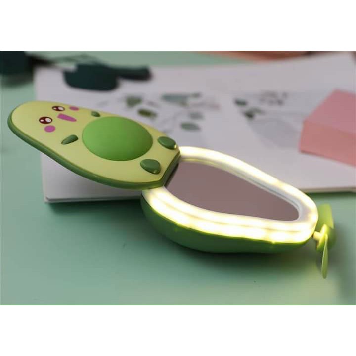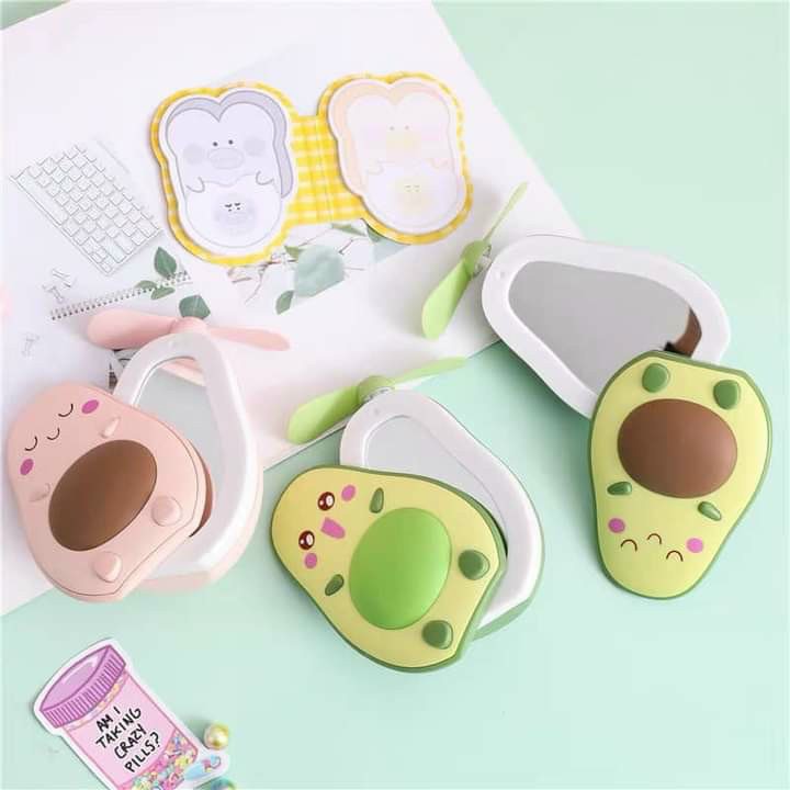 Quạt mini cầm tay hình quả bơ 3in1, đèn led - gương - quạt