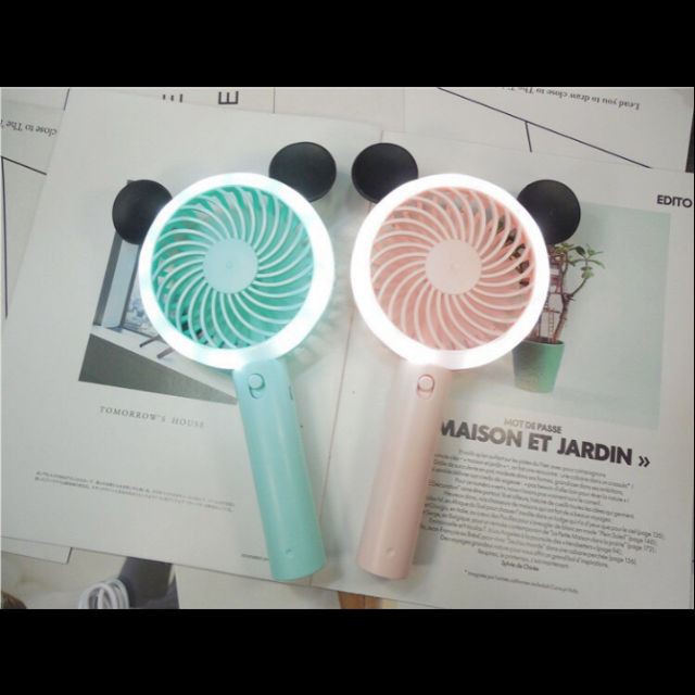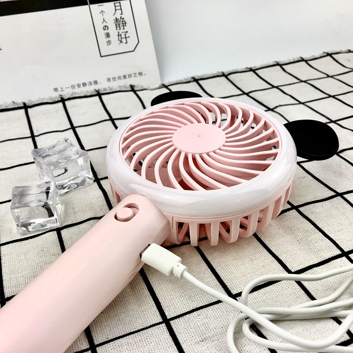 Quạt Mini Cầm Tay - Hình Tai Gấu - Có Đèn Led Siêu Xinh - Chế Độ Gió Cực Mát - Tặng Pin Sạc Sử Dụng Liên Tục Khoảng 4H