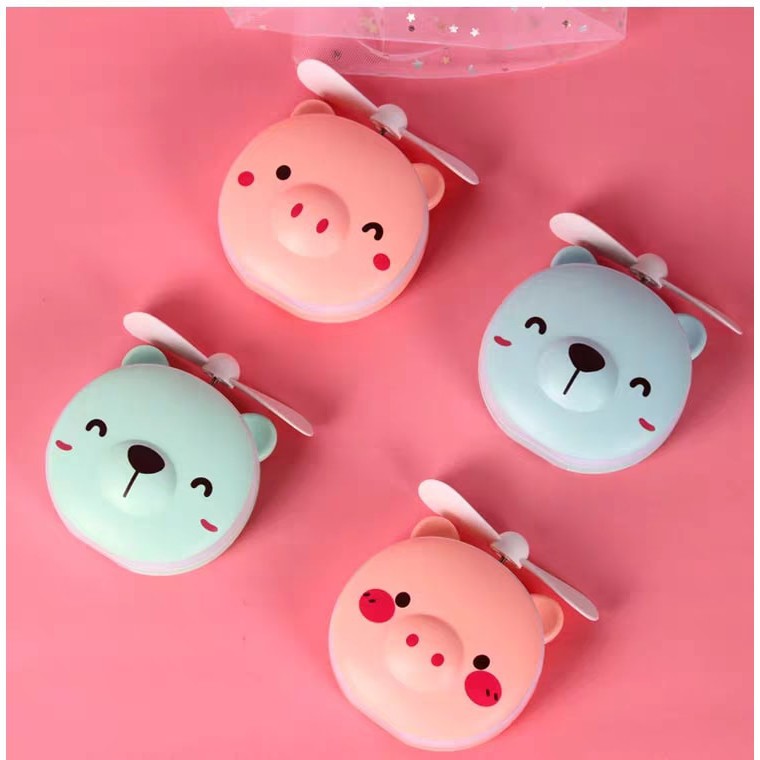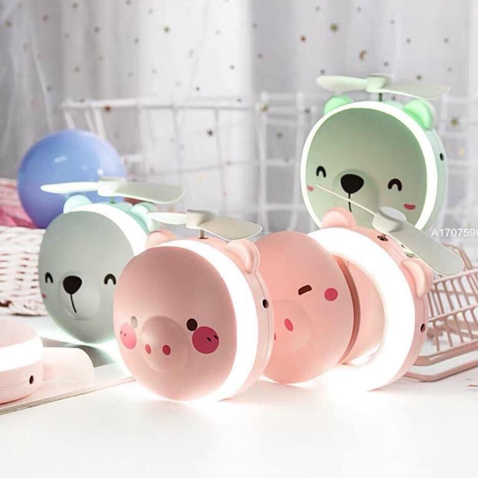 Điện Thoại & Phụ Kiện > Phụ kiện > Quạt USB & Quạt điện thoại || Quạt mini cầm tay lợn hồng, gấu xanh kèm gương và đèn LED siêu dễ thươngCòn hàng