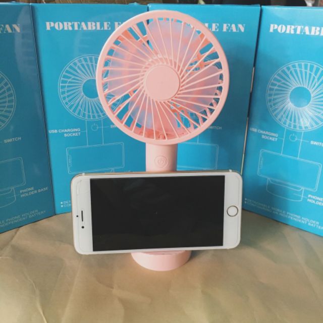 Quạt mini cầm tay Portable Fan 4 cánh kèm kèm chân sạc có đế để bàn, để điện thoại