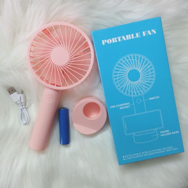 Giới thiệu Quạt mini cầm tay Portable Fan 4 cánh kèm kèm chân sạc có đế để bàn, để điện thoại