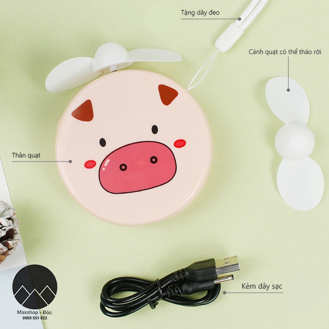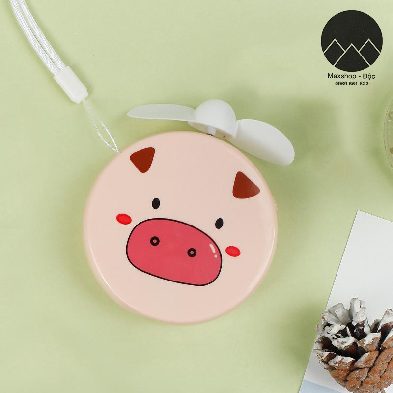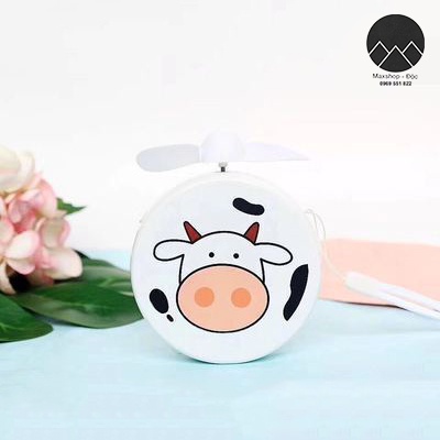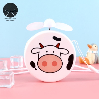 Quạt mini cầm tay quạt tích điện mini bỏ túi du lịch hình bò heo đáng yêu siêu bền Maxshop Độc