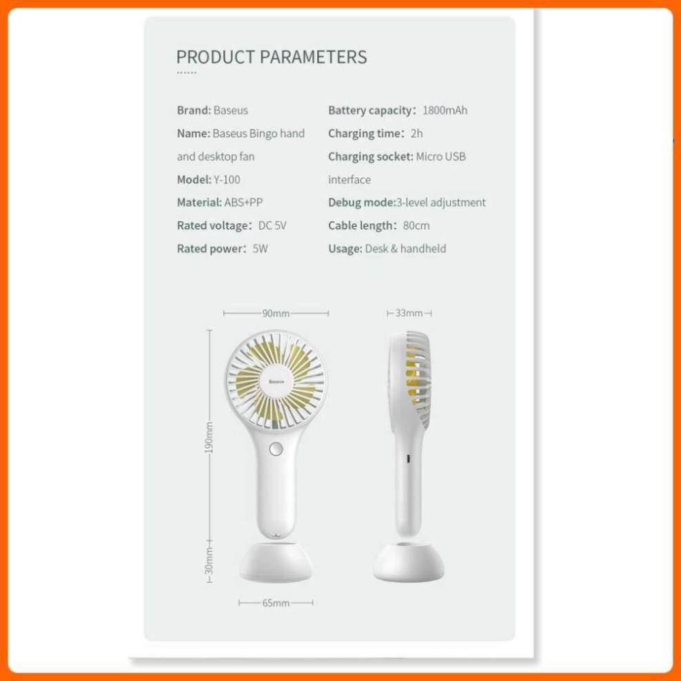 CHI TIẾT Quạt Mini Cầm Tay - Quạt Tích Điện Baseus Y100 Mini USB Fan Để Bàn Hoặc Cầm Tay Pin Bền 1800Mah