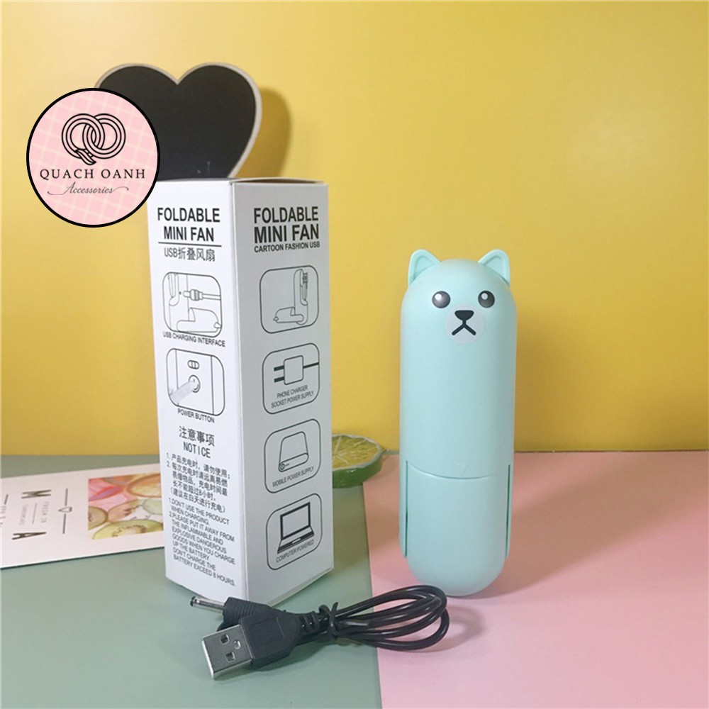 Quạt mini cầm tay sạc pin tích điện nhỏ gọn, hình con vật dễ thương - QUAT09