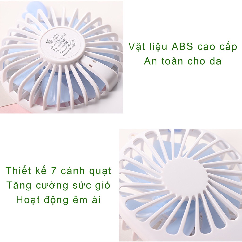 Quạt mini cầm tay siêu nhỏ và mát USB 7 cánh quạt tạo gió có đế kê điện thoại
