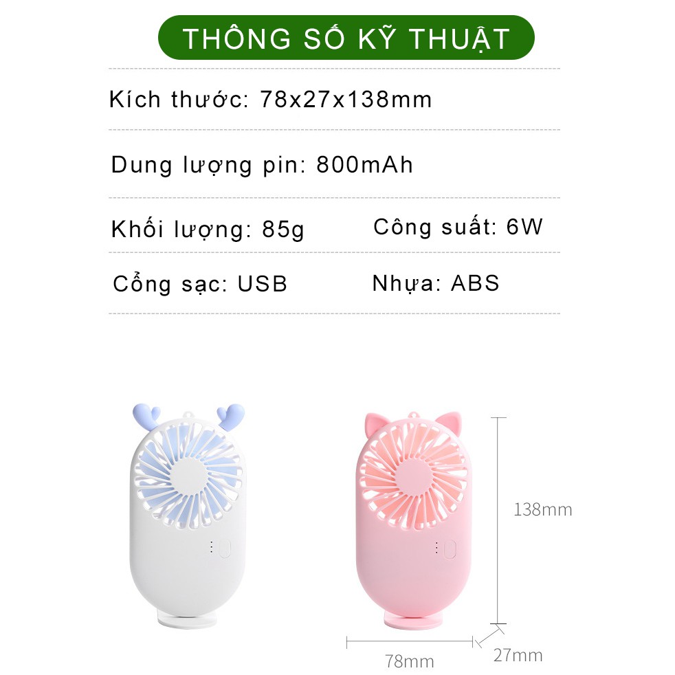 - Kích thước quạt mini cầm tay dễ dàng mang theo trong balo túi sách ví