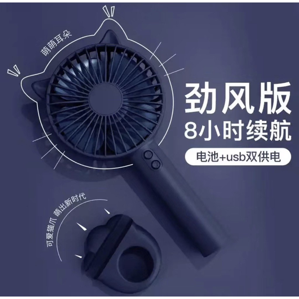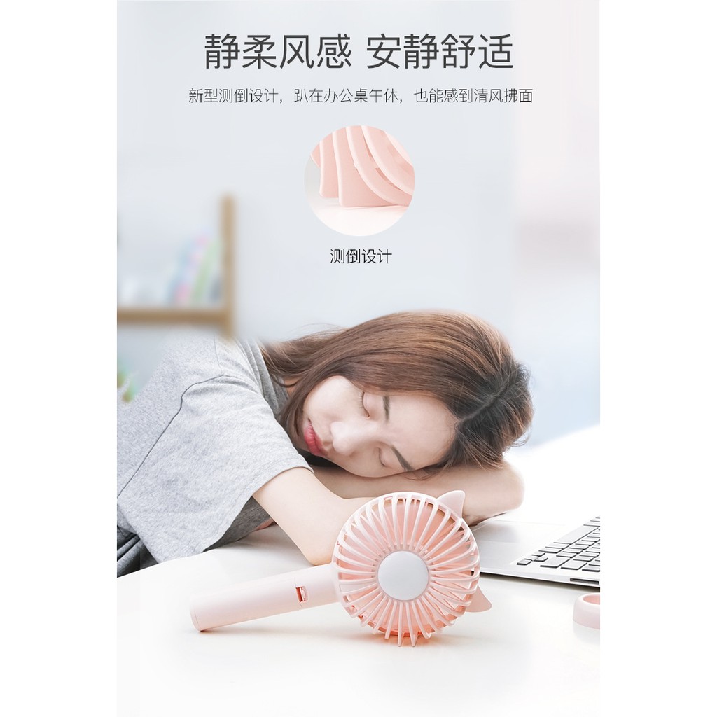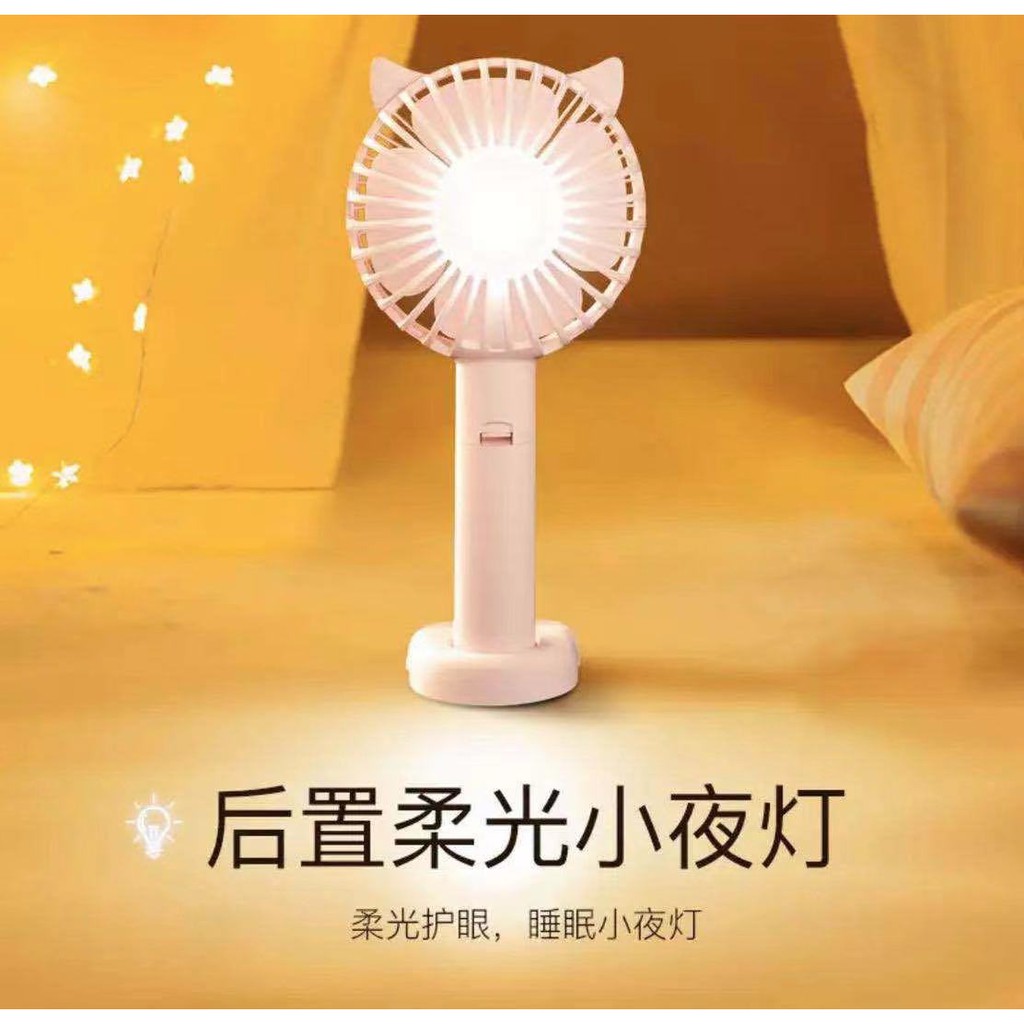 Quạt mini cầm tay tai mèo siêu dễ thương giá rẻ tiện lợiTích hợp 3 trong 1 : quạt làm mát mặt trước , đèn ngủ mặt sau , giá để điện thoại chân đế .