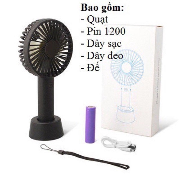 QUẠT MINI CẦM TAY TÍCH ĐIỆN 3 TỐC ĐỘ + PIN + CÁP SẠC + ĐẾ QUẠT -N9