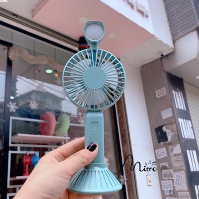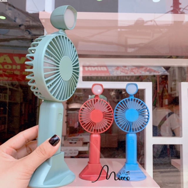 Tên sản phẩm : Quạt mini cầm tay tích điện kèm đèn- Đặc biệt sắm quả quạt này mang đi học là chuẩn đét luôn ấy, vì nó có giá để được trên bàn ngồi quạt mà k tốn sức