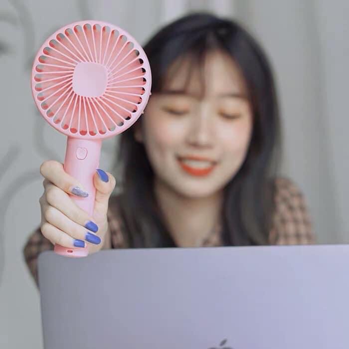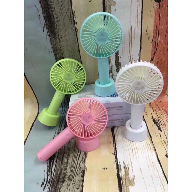 QUẠT MINI CẦM TAY TÍCH ĐIỆN 3 TỐC ĐỘ + PIN + CÁP SẠC + ĐẾ QUẠT🍭44k