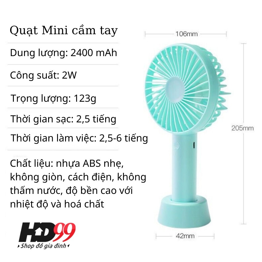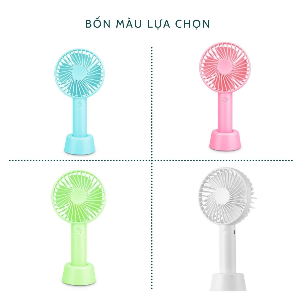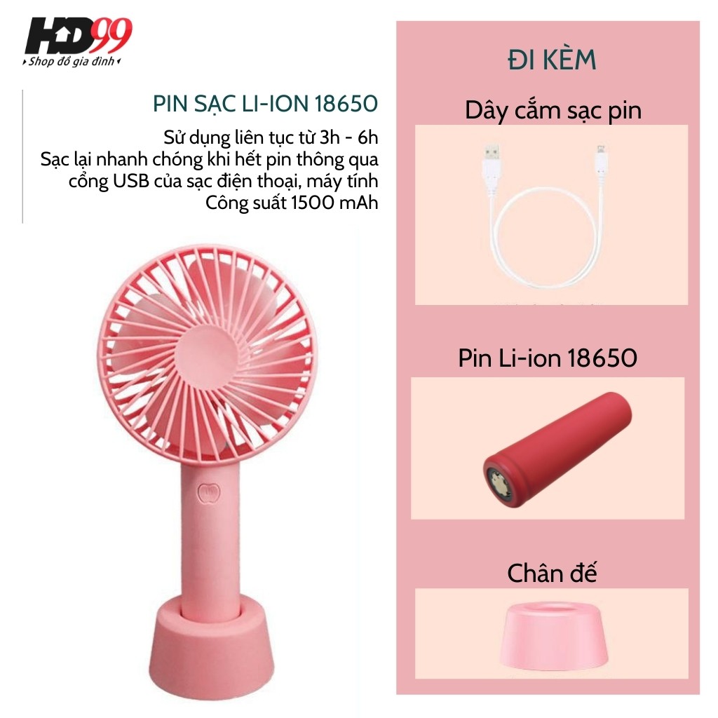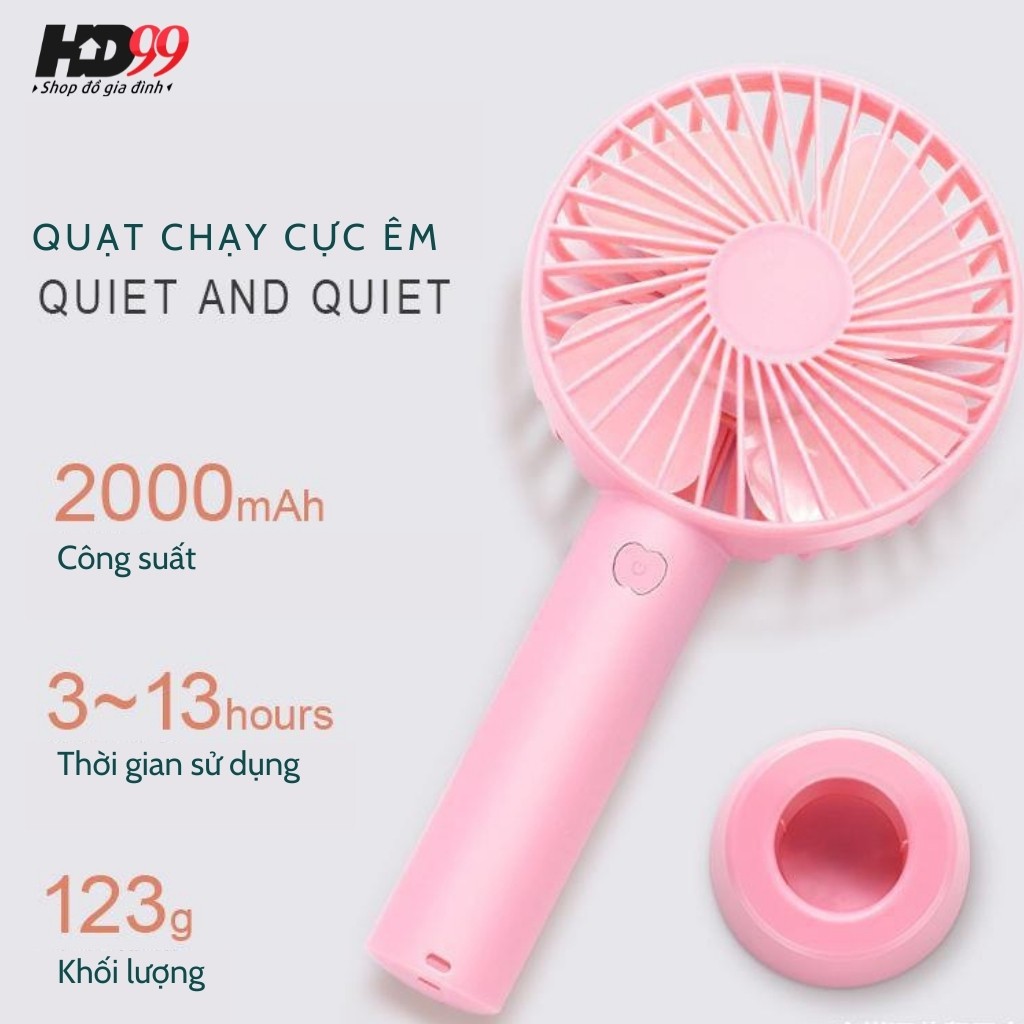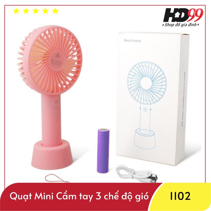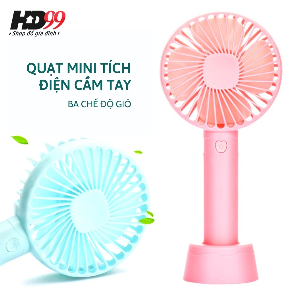 Quạt Mini cầm Tay Tích Điện 3 Chế Độ Gió | Tặng kèm Pin, Dây Sạc và chân Đế