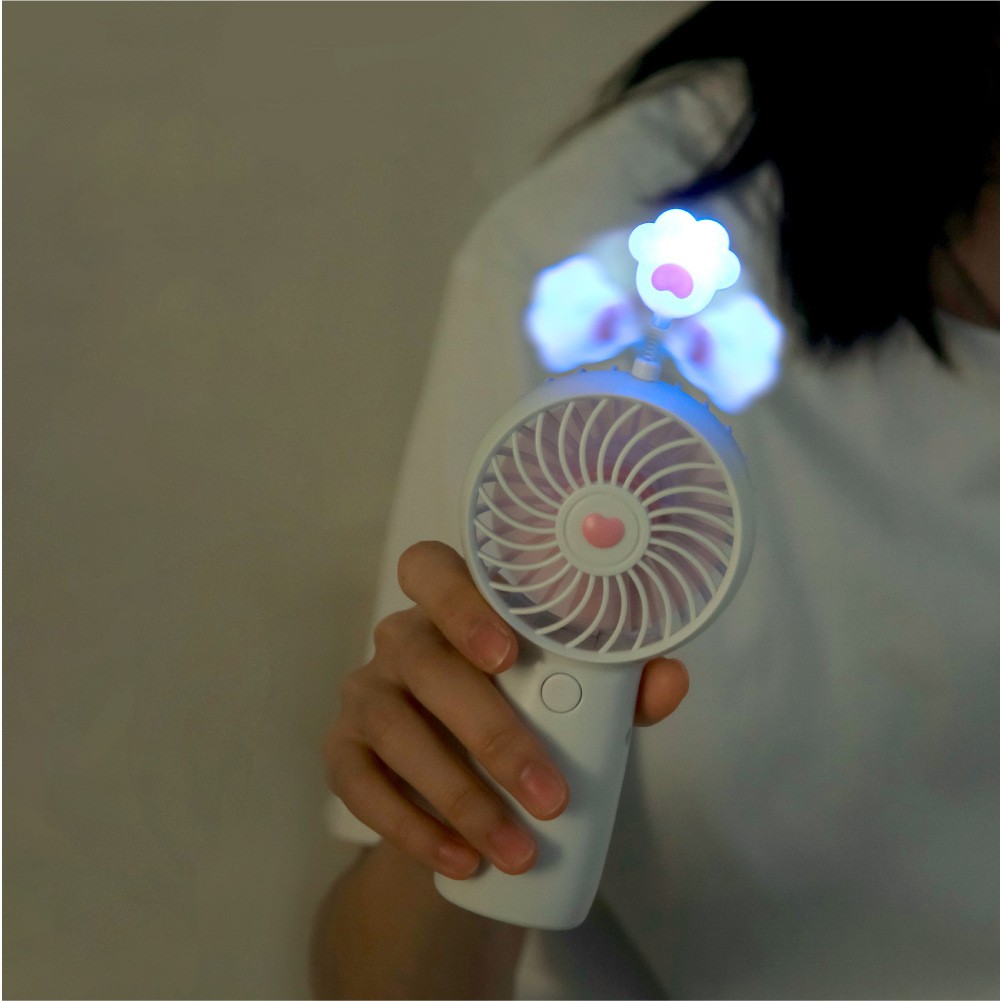 Quạt Mini Cầm Tay Tích Điện Có Đèn Phát Sáng Gió Mát Cute 2022