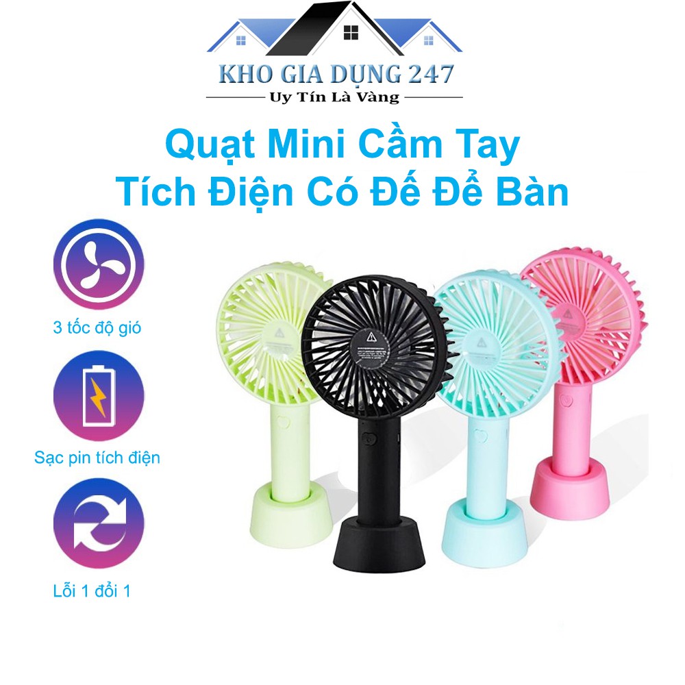 Giới thiệu Quạt Mini Cầm Tay Tích Điện Có Đế Để Bàn - Quạt Tích Điện - Quạt Cầm Tay, Có 3 Tốc Độ Gió, Gọn Nhẹ