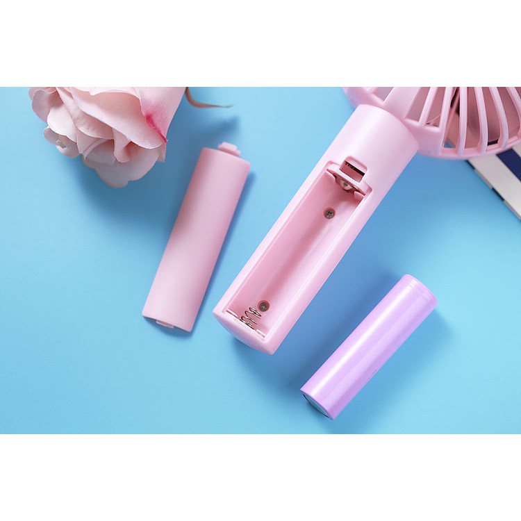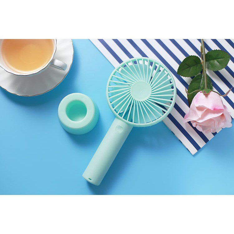 Quạt mini cầm tay tích điện tiện lợi kèm cáp sạc có tặng chân đế giữ quạt (3 chế độ gió) (Xanh lá / Hồng)