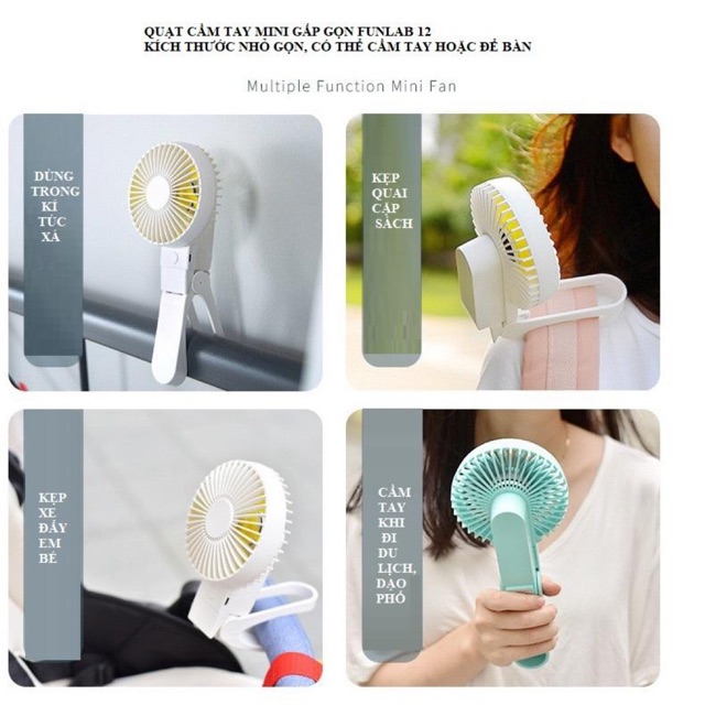 Giới thiệu Quạt mini cầm tay tích điện Funlab 12 dung lượng 4000mah