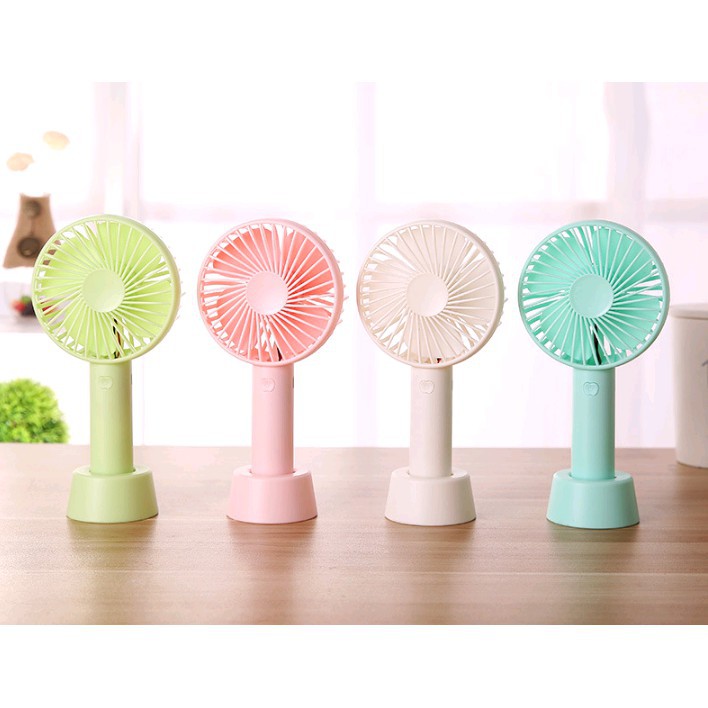 Quạt mini cầm tay tích điện tiện lợi kèm cáp sạc và pin có tặng chân đế giữ quạt để bàn gồm 3 chế độ gió siêu mát