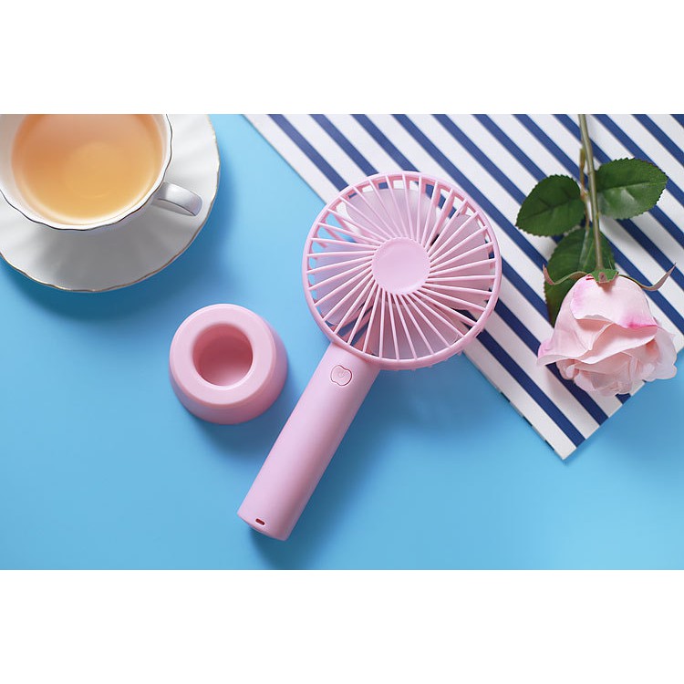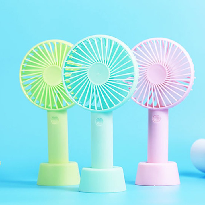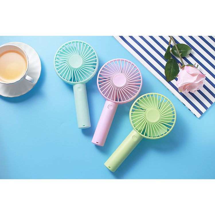 Quạt mini cầm tay tích điện tiện lợi kèm cáp sạc có tặng chân đế giữ quạt (3 chế độ gió) (Xanh lá / Hồng)