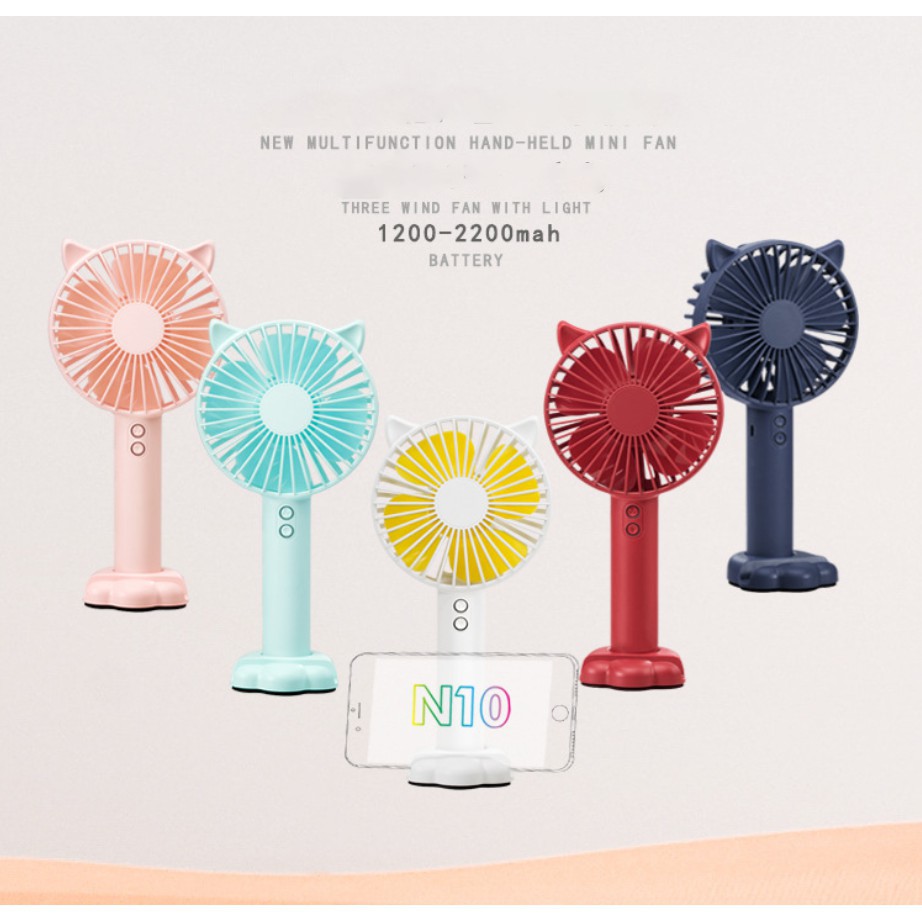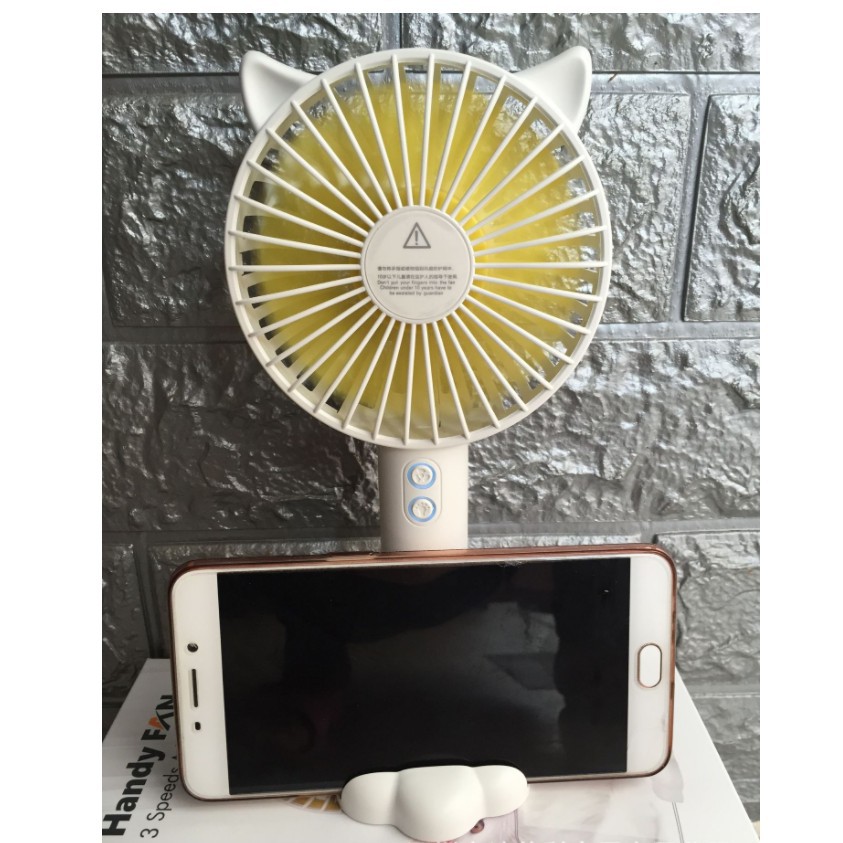Quạt mini cầm tay tiện dụng handy fan 3 tốc độ gió tai mèo cao cấp có đèn kiêm giá đỡ điện thoại