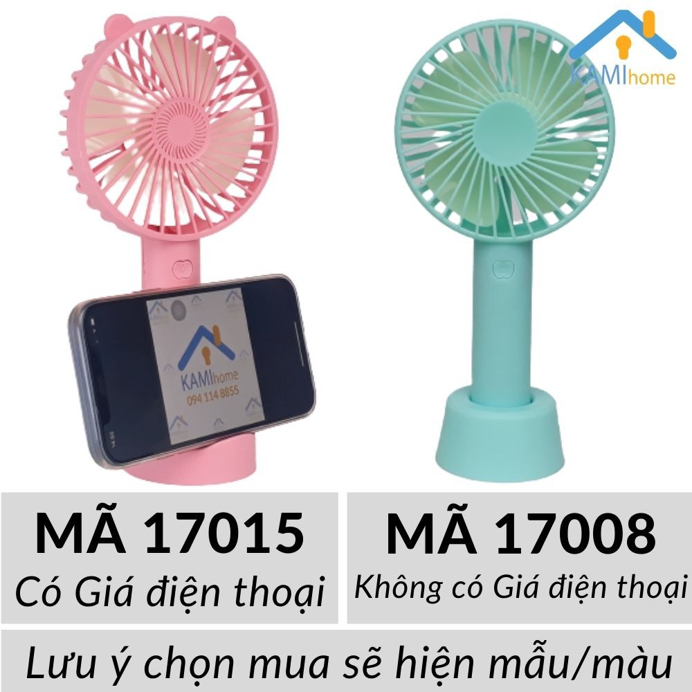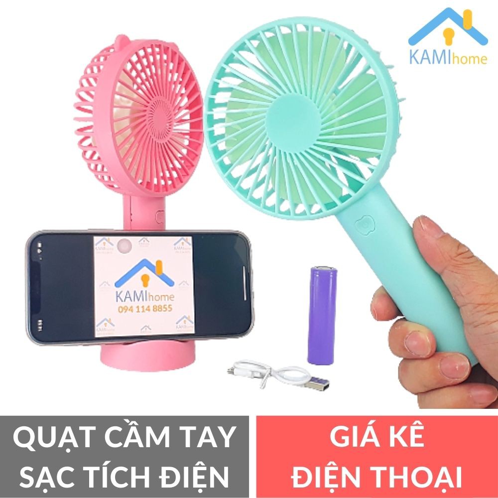Quạt mini cầm tay và để bàn Pin sạc tích điện có Giá kê điện thoại mã 17015.17008