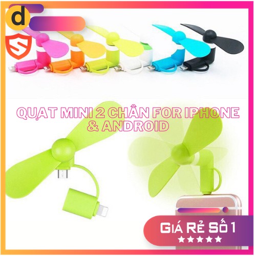 Quạt mini cho Iphone và Android 2 cánh 0.1W - Quạt USB chân nguồn Lightning & Micro Usb