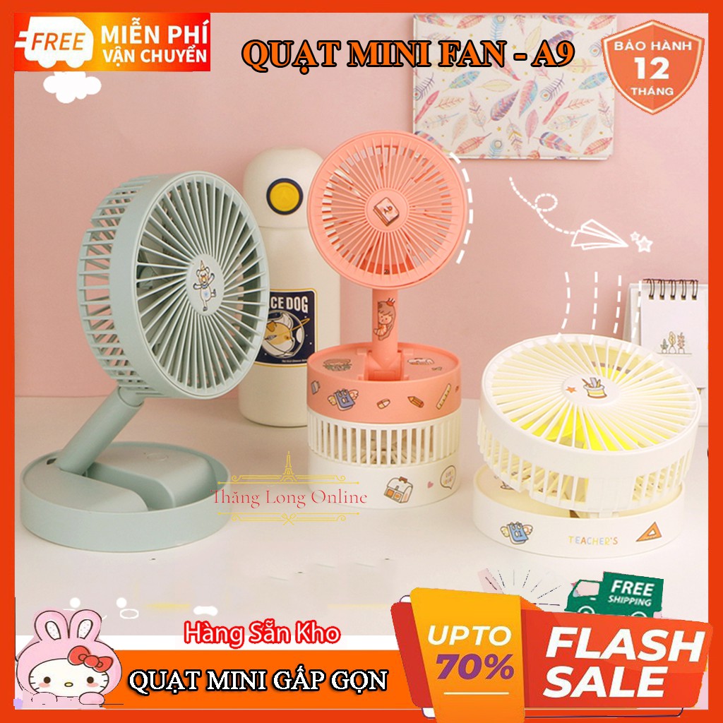 Quạt Mini Để Bàn Sạc Tích Điện Gấp Gọn Fan A9, Siêu Tiện Dụng 3 Cấp Độ , Siêu Mát Cho Mùa Hè 2021