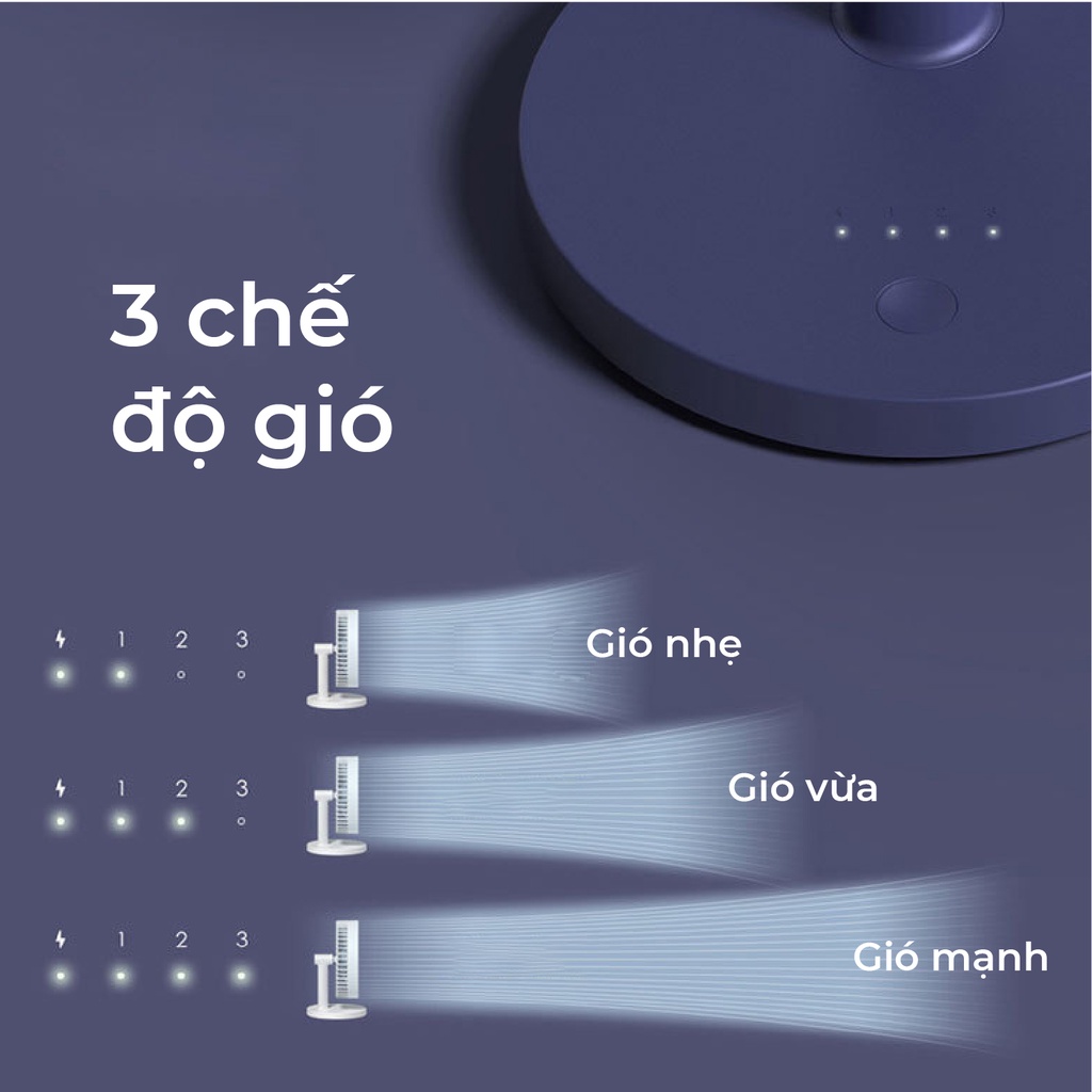 - Cách sử dụng: Ấn nhẹ nút mở nguồn để bật quạt, sau đó ấn lần lượt sẽ đổi chế độ gió. Có đèn hiển thị phía dưới.