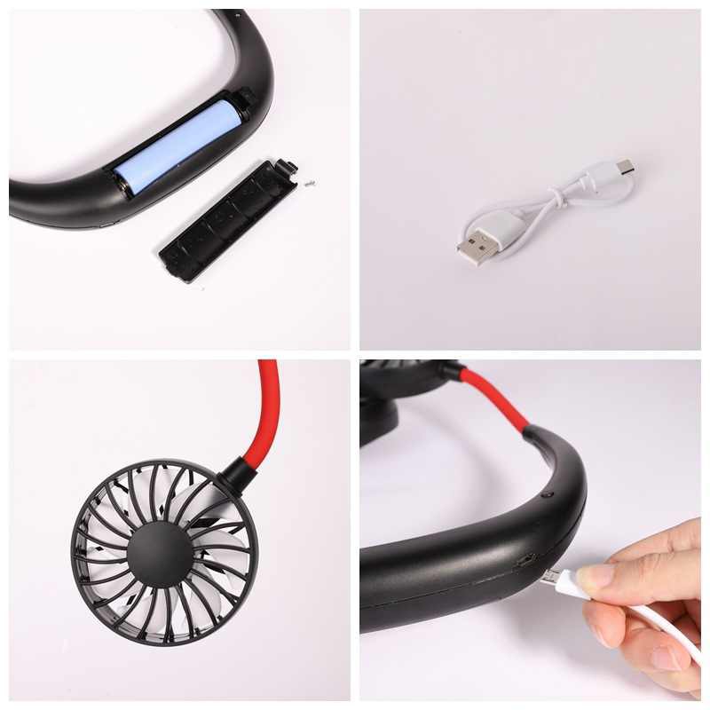 Giới thiệu Quạt mini đeo cổ tích điện sạc pin usb loại quàng cầm tay chữ U máy nhỏ 3 cấp độ gió siêu mát