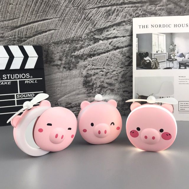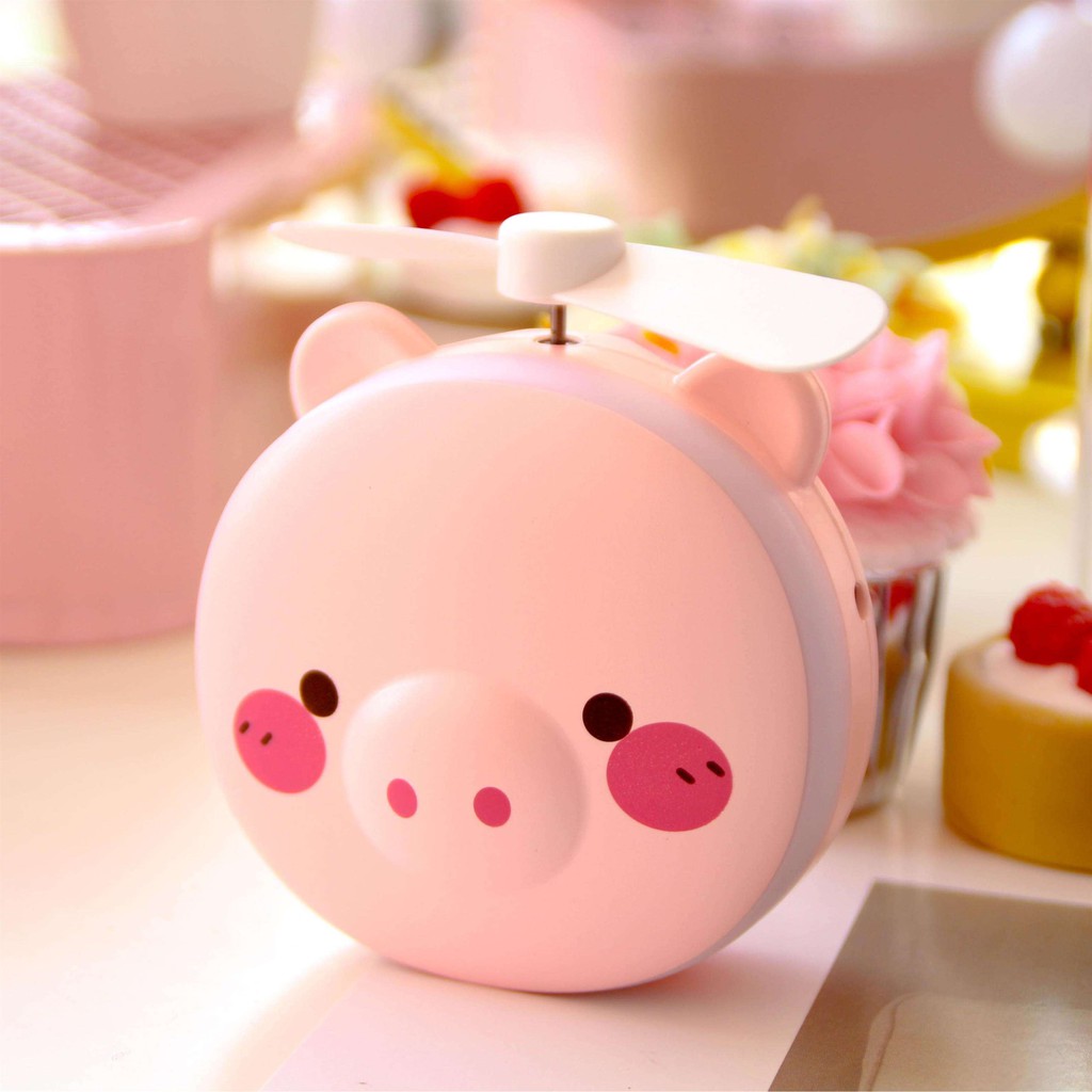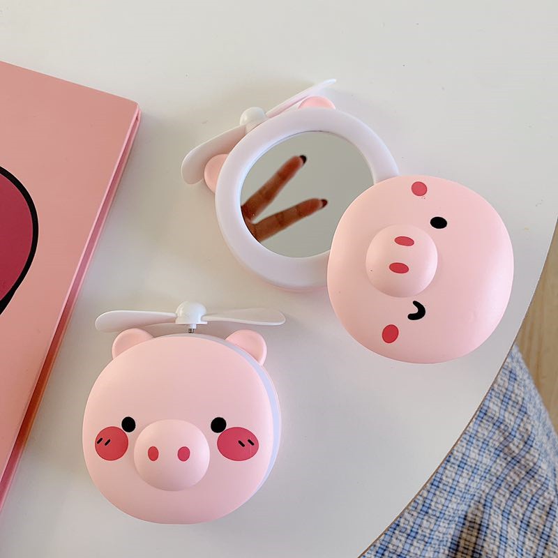 Quạt Mini Fan Để Bàn Điều Chỉnh 2 Tốc Độ Cực Mát Kiêm Đèn Ngủ Quạt sạc mini để bàn hình thú 3 IN 1 kèm đèn led và gươngSản phẩm siêu tiện lợi ngày hè dành cho team bánh bèo cập bến