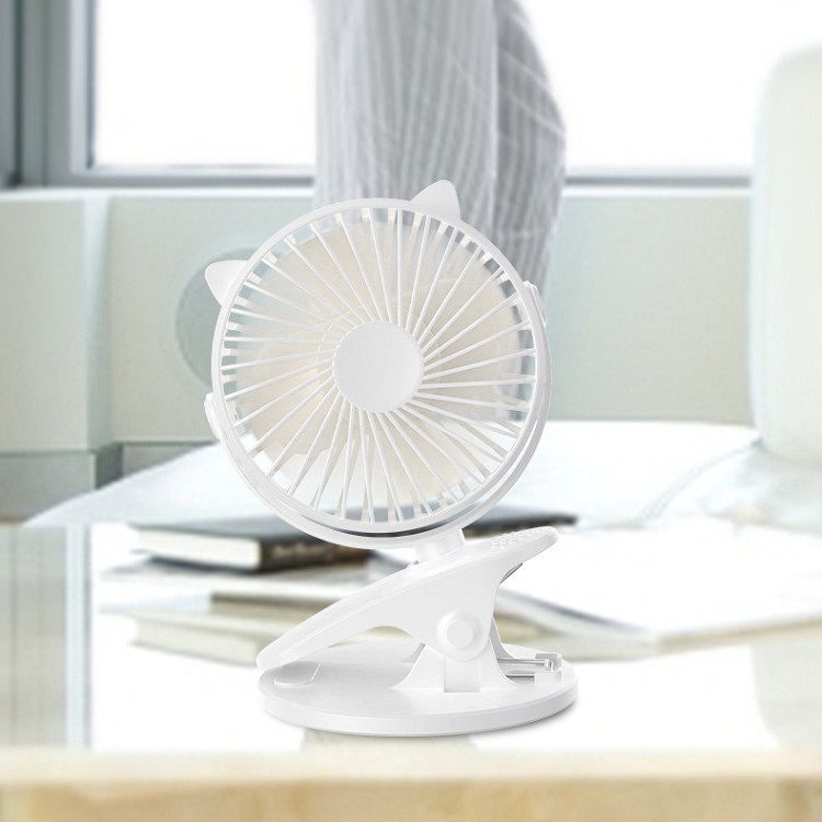 Sản phẩm có thiết hình tai mèo siêu đáng yêu, nhiều màu sắc phù hợp với mọi lứa tuổi. Chất liệu nhựa ABS kết cấu bền, chịu lực tốt. Quạt kẹp tích điện, đế kẹp xoay chiều 360º với thiết kế mới lạ. Chân đế là chiếc kẹp lớn, dễ dàng kẹp vào mặt bàn, kệ hay dựng dứng trên mặt phẳng. Có thể điều chỉnh tốc độ quạt khác nhau.
