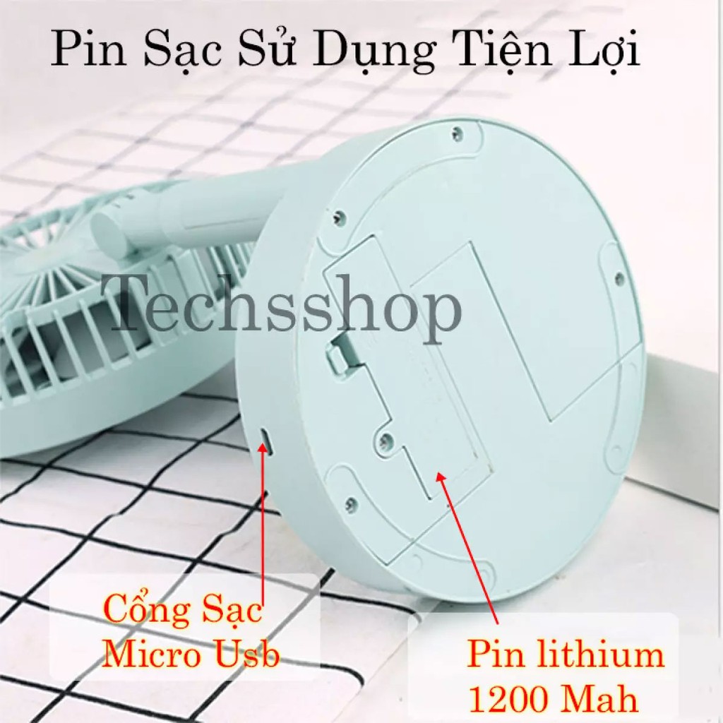 - Quạt gấp gọn ubs pin sạc đặc biệt quạt này được trang bị pin sạc lithium, với dung lượng 1200mAh giúp máy hoạt động từ 2-4h mà không cần đến các dây cắm sạc, tiện lợi so với các dòng sản phẩm khác.