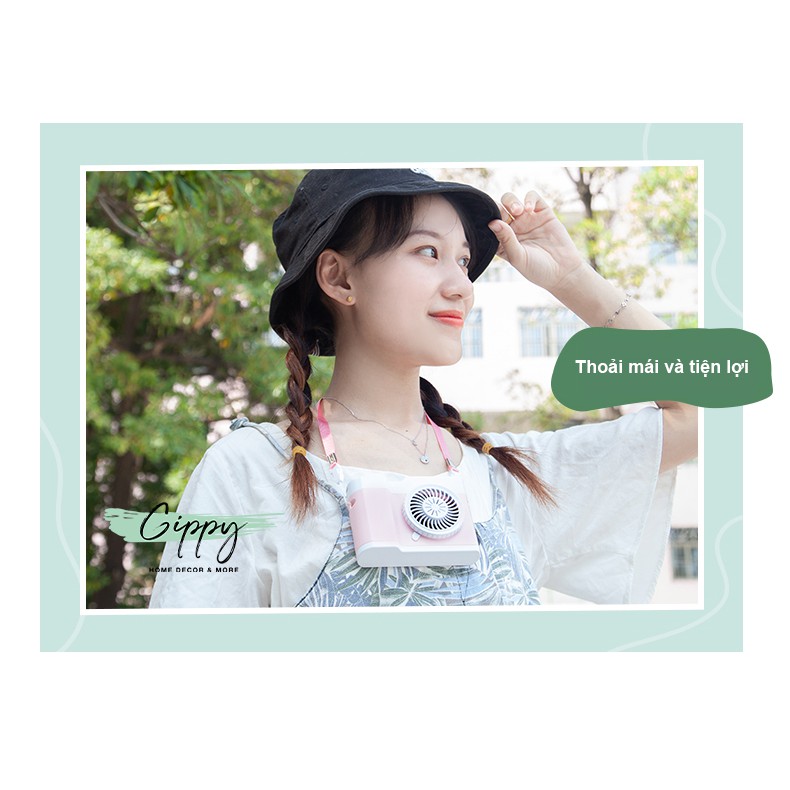 Giới thiệu Quạt mini hình máy ảnh tích điện đáng yêu siêu bền, có dây đeo vào cổ tiện lợi - Gippy Decor