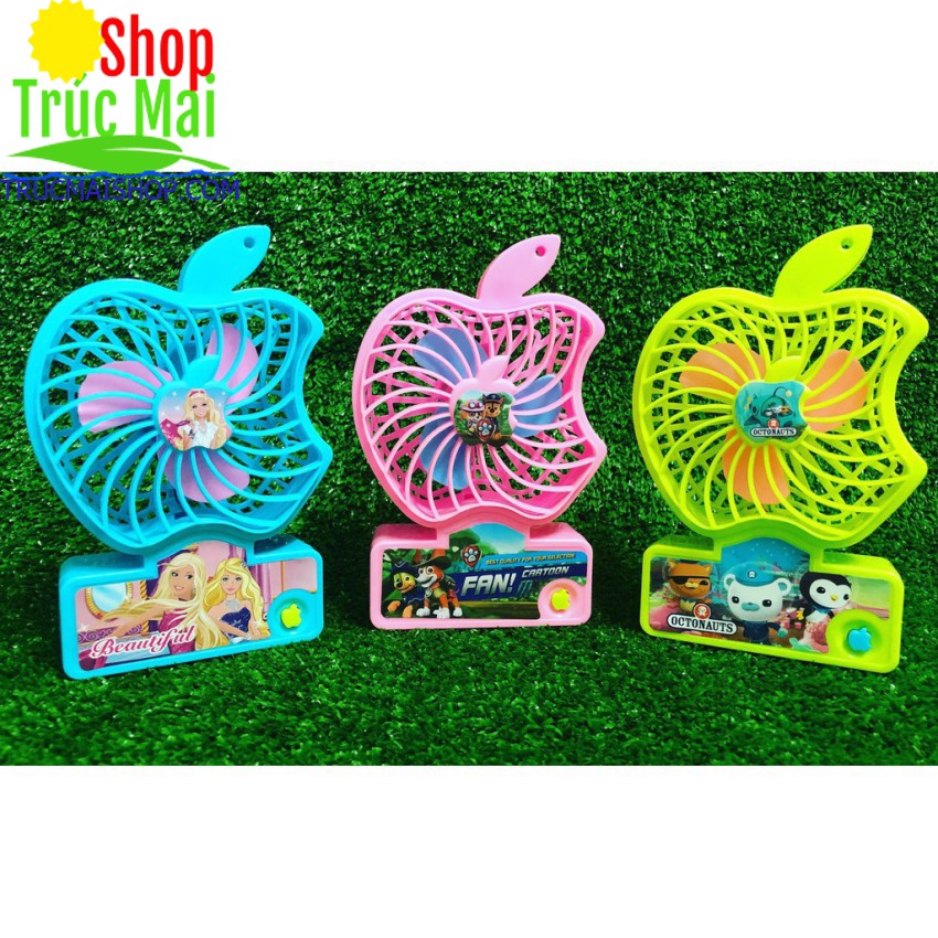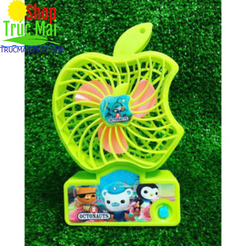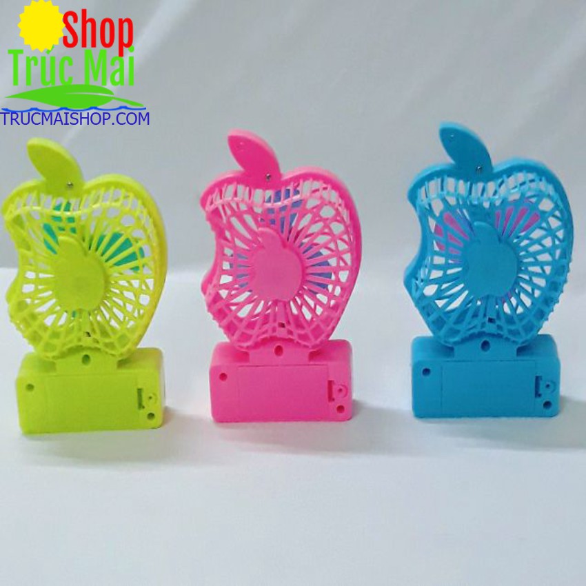 Quạt táo mini để bàn chạy bằng pin lắp 2 cục pin vào quạt bật công tắc quạt sẽ hoạt động , nhỏ gọn có thể mang khi đi chơi du lịch , gặp trời nóng bất có thể mở quạt để xua tan đi phần nào cái nóng ,