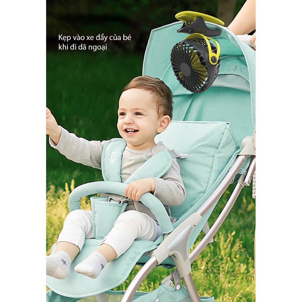 Quạt Mini Kẹp Xe Đẩy Hàn Quốc Cho Em Bé 3 Chế Độ Gió Cực Êm , Quạt Kẹp Để Bàn, Đa Năng Xoay 360 Độ Tặng Kèm Pin Sạc