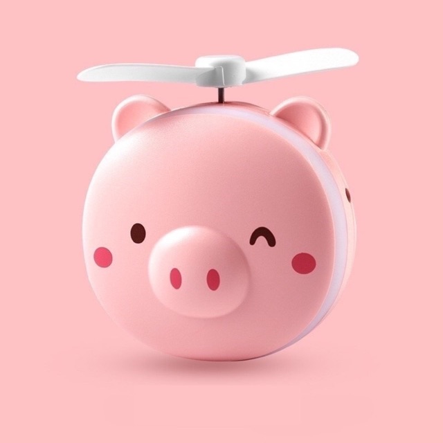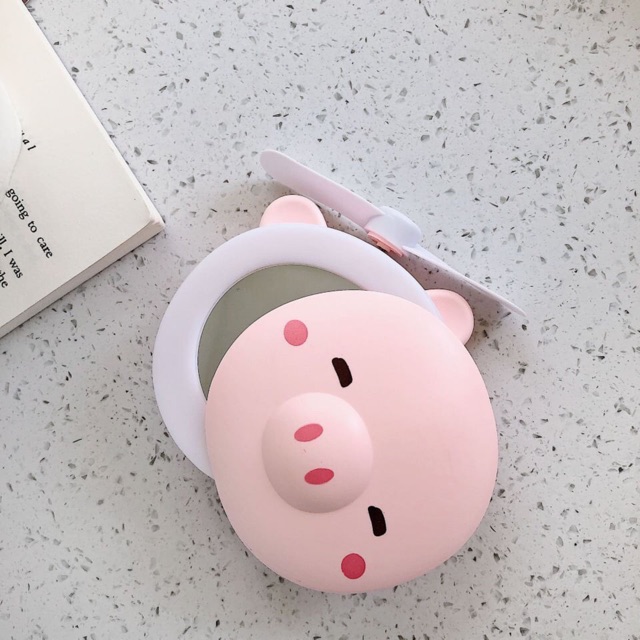 Quạt mini màu Hồng hình mặt chú lợn là quạt có cả gương soi và đèn ngủ cùng quạt gió. Giá: 49.000