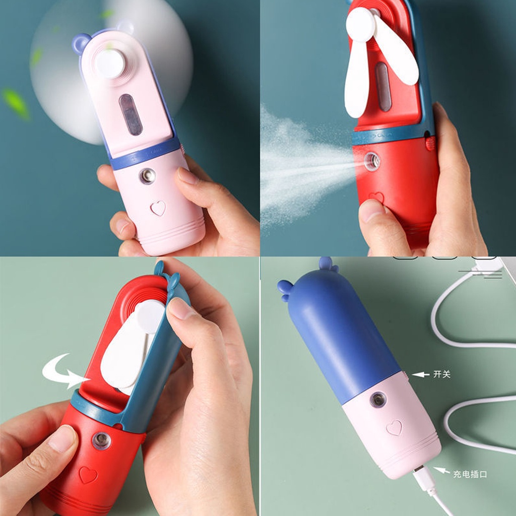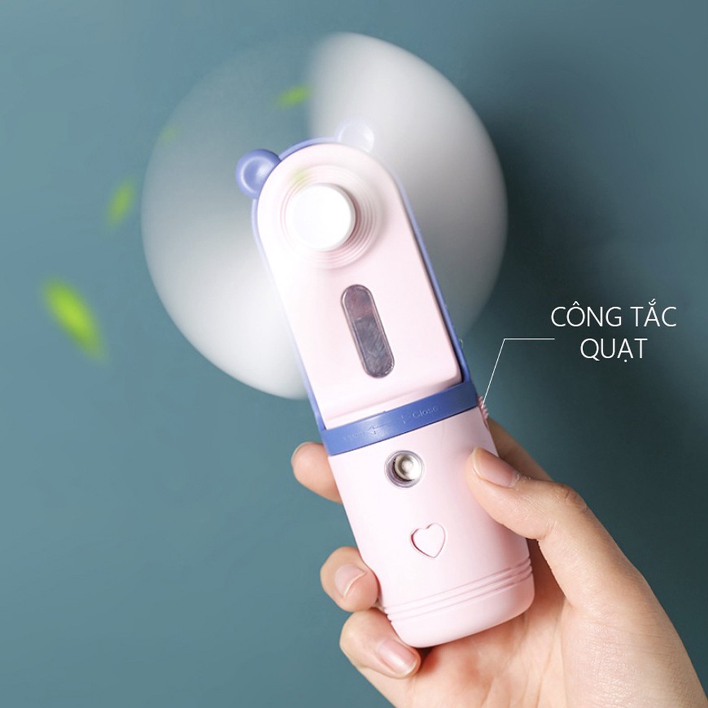 Quạt Mini Phun Sương Nano Tạo Độ Ẩm, Quạt Mini Cầm Tay Cổng Sạc USB Tích Điện Tiện Dụng